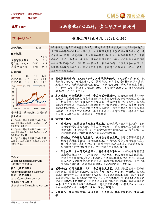 【海通证券】【20210620】食品饮料行业周报:白酒聚焦核心品种,食品配置价值提升-7页