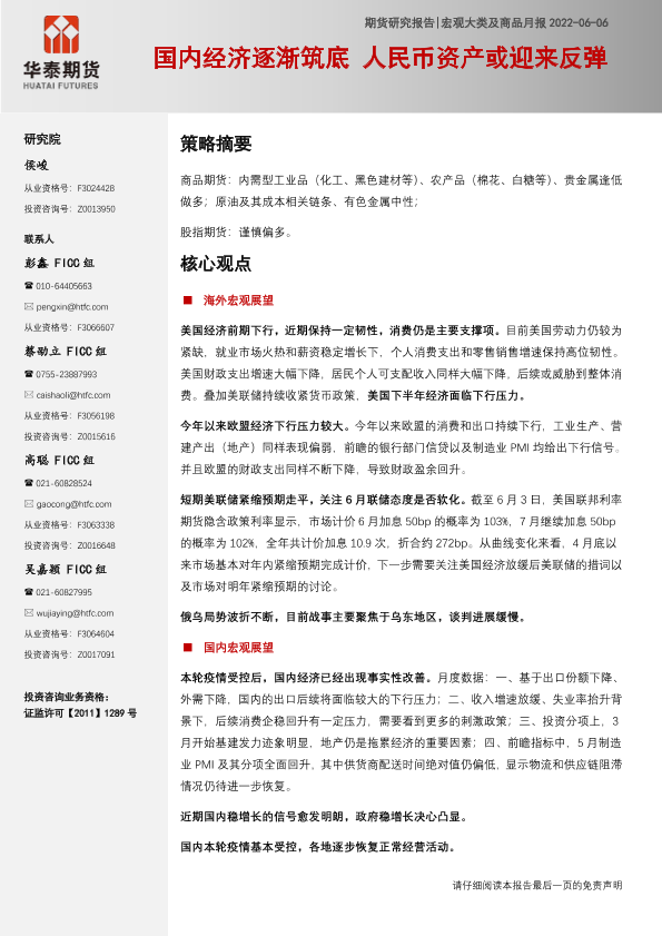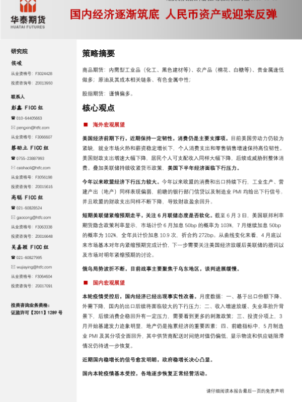 【华泰期货】【20220606】宏观大类及商品月报:国内经济逐渐筑底,人民币资产或迎来反弹-30页
