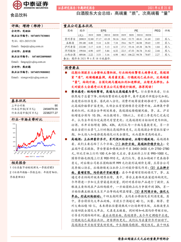 【中泰证券】【20210621】食品饮料:白酒股东大会总结:高端重“质”,次高端看“量”-14页