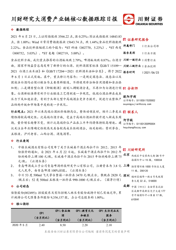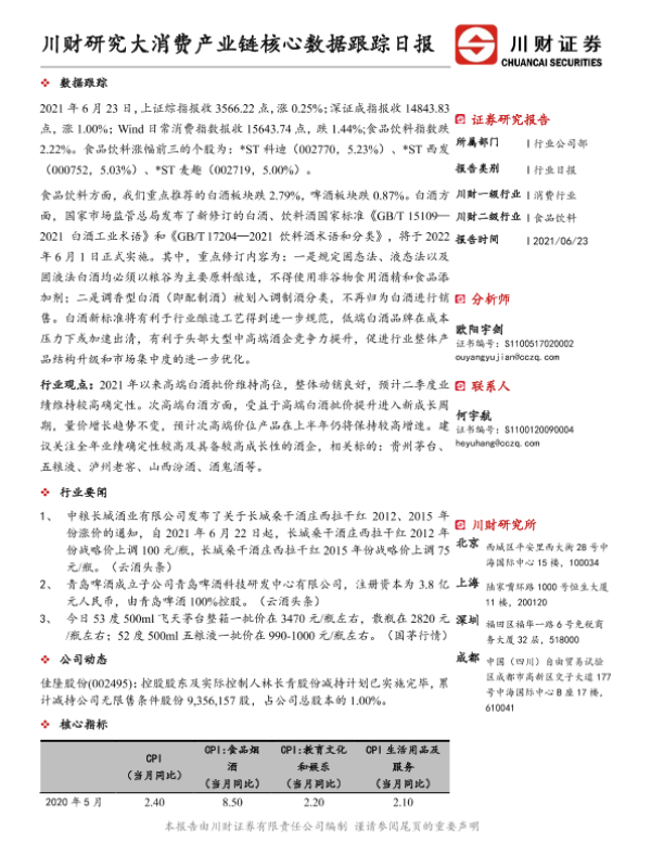 【川财证券】【20210623】大消费产业链核心数据跟踪日报-4页