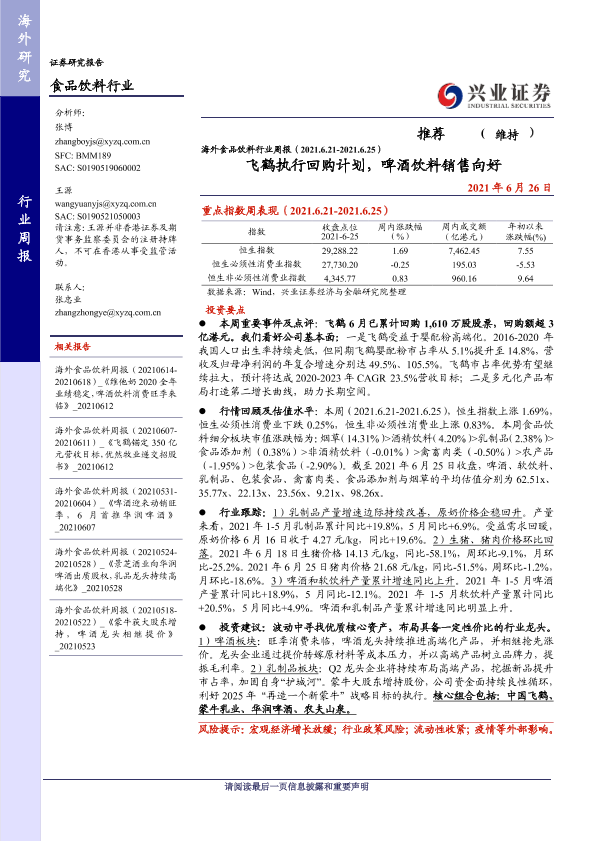 【兴业证券】【20210626】海外食品饮料行业周报(2021.6.21-2021.6.25)-9页