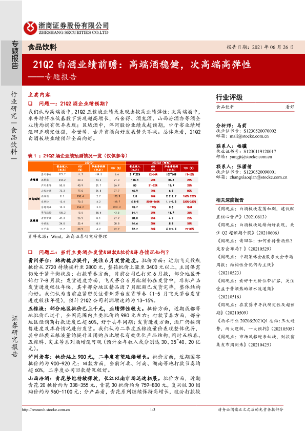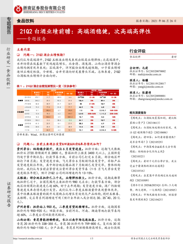 【浙商证券】【20210626】21Q2白酒业绩前瞻:高端酒稳健,次高端高弹性-3页