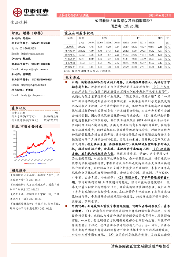 【中泰证券】【20210627】20210627-中泰证券-食品饮料周思考(第26周):如何看待618数据以及白酒消费税?-15页