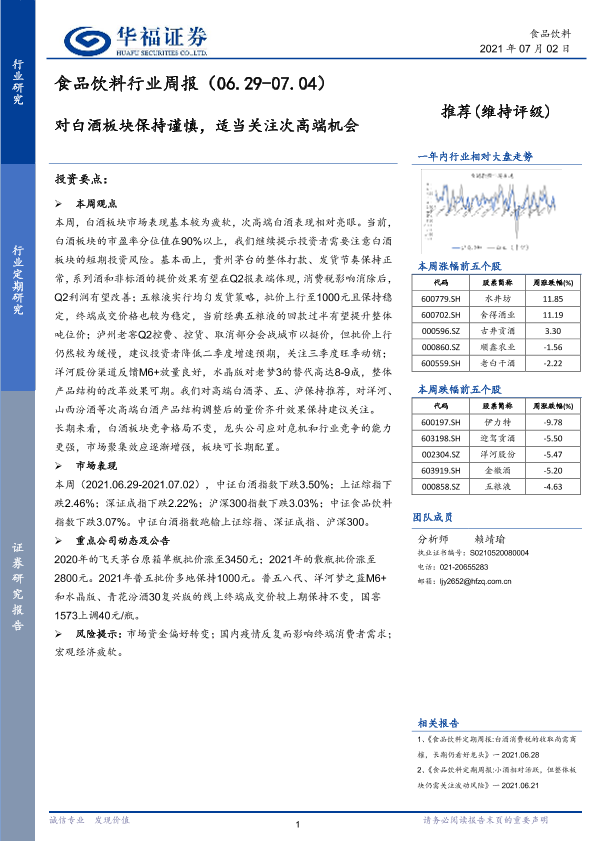 【华福证券】【20210702】食品饮料行业周报:对白酒板块保持谨慎,适当关注次高端机会-7页