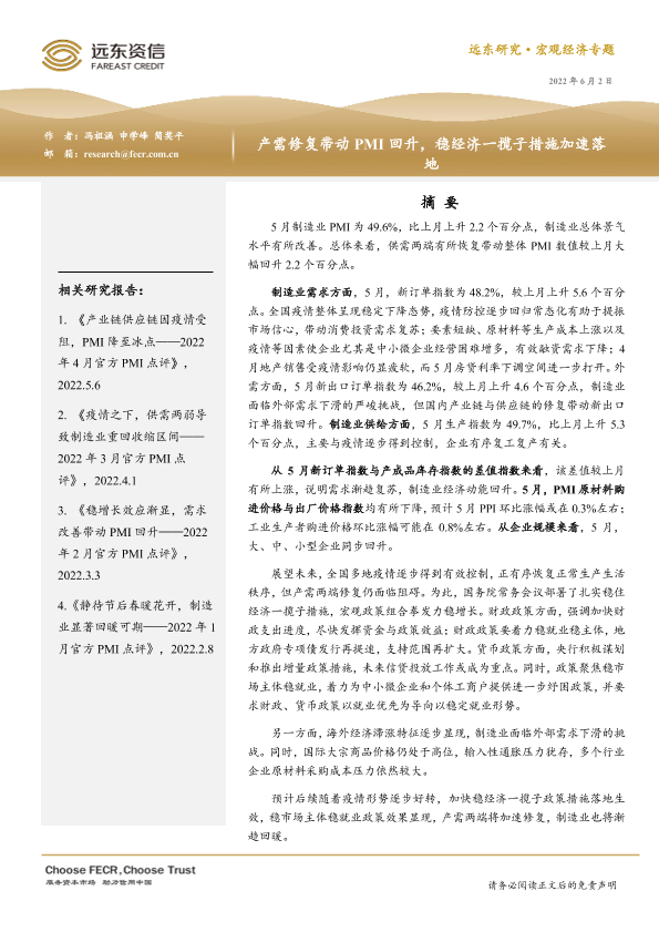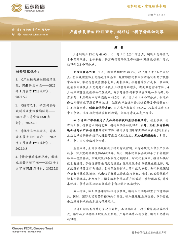 【远东资信】【20220602】产需修复带动PMI回升,稳经济一揽子措施加速落地-15页