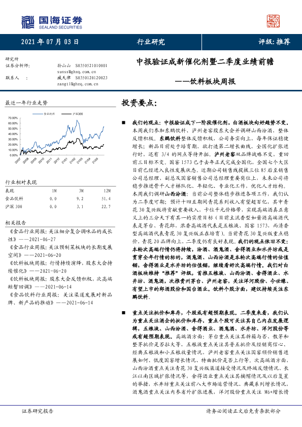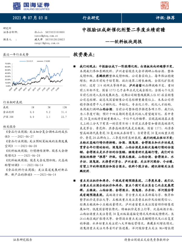 【国海证券】【20210703】20210703-国海证券-饮料板块周报:中报验证成新催化剂暨二季度业绩前瞻-16页