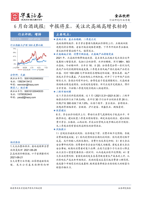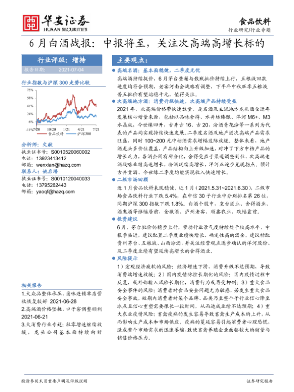 【华安证券】【20210704】6月白酒战报:中报将至,关注次高端高增长标的-15页