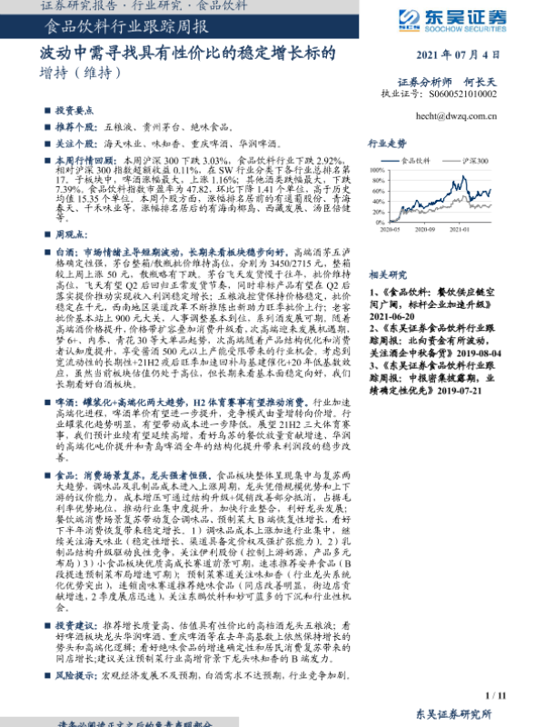 【东吴证券】【20210704】20210704-东吴证券-食品饮料行业跟踪周报:波动中需寻找具有性价比的稳定增长标的-11页