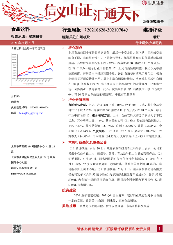 【山西证券】【20210705】20210705-山西证券-食品饮料行业周报:继续关注白酒板块-10页