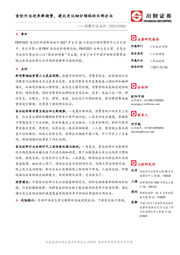 【川财证券】【20210706】消费行业点评:食饮行业迎来新趋势,建议关注细分领域的头部企业-2页