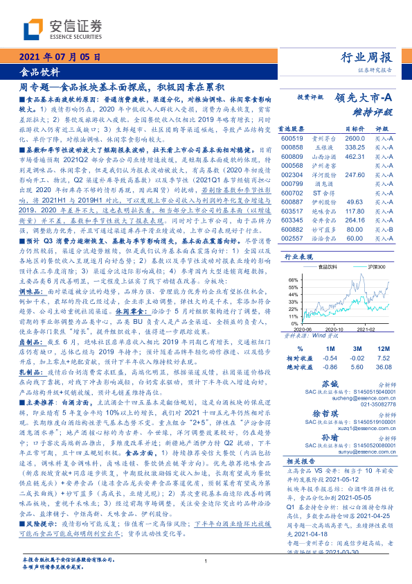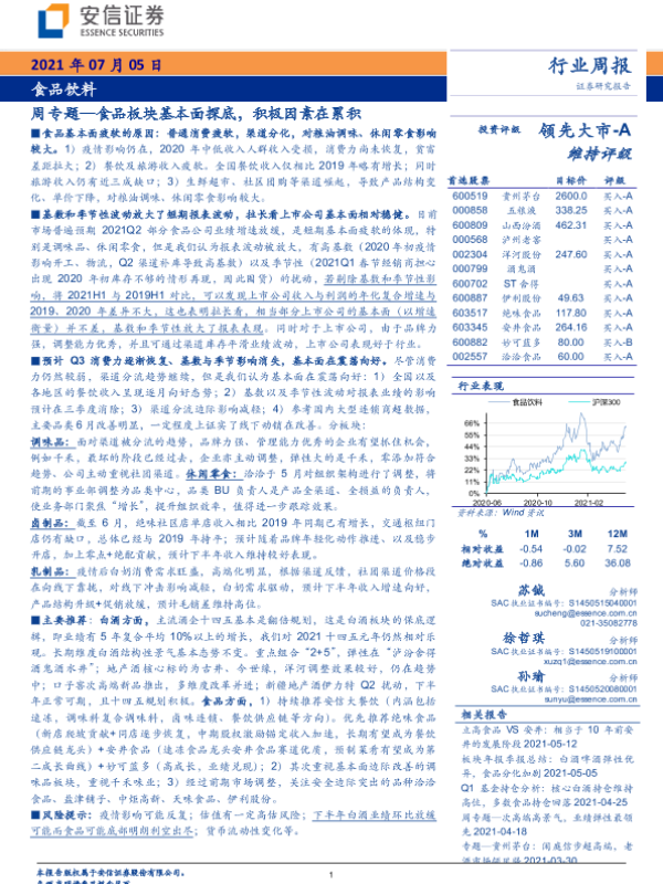 【安信证券】【20210705】食品饮料行业周专题:食品板块基本面探底,积极因素在累积-23页