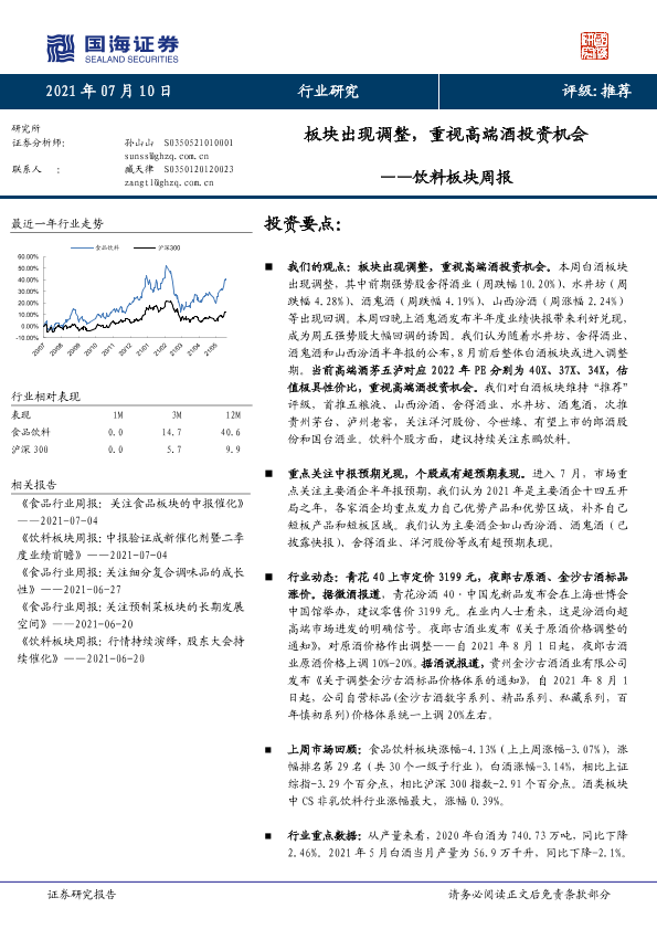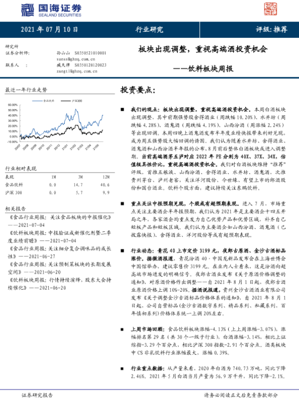 【国海证券】【20210710】20210710-国海证券-饮料板块周报:板块出现调整,重视高端酒投资机会-15页