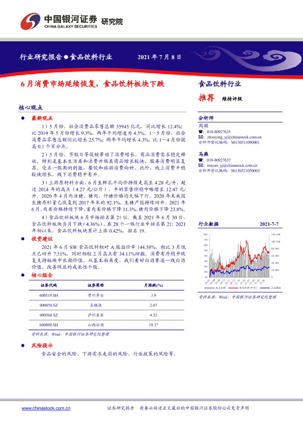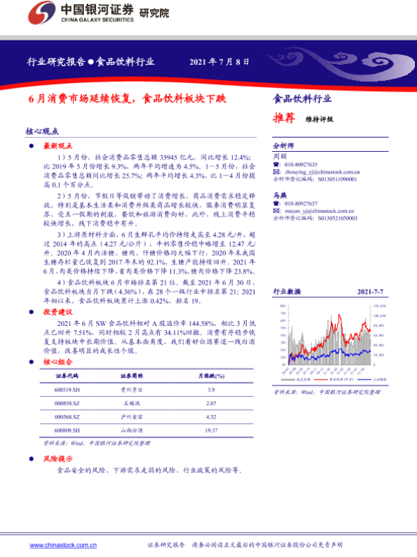 【银河证券】【20210708】20210708-中国银河-食品饮料行业:6月消费市场延续恢复,食品饮料板块下跌-26页