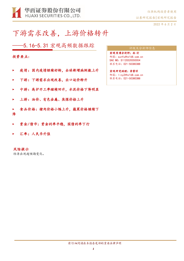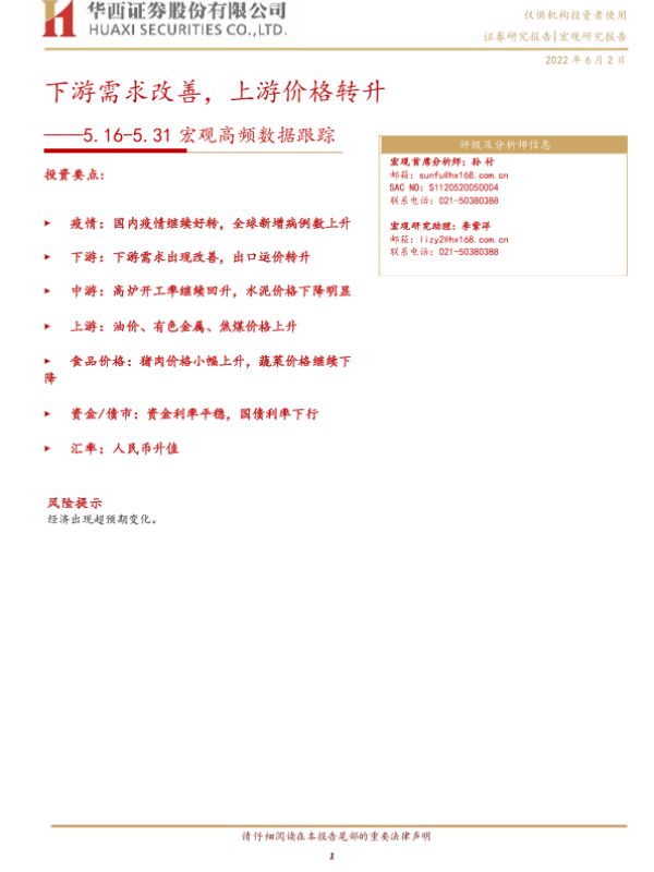 【华西证券】【20220602】宏观高频数据跟踪:下游需求改善,上游价格转升-15页