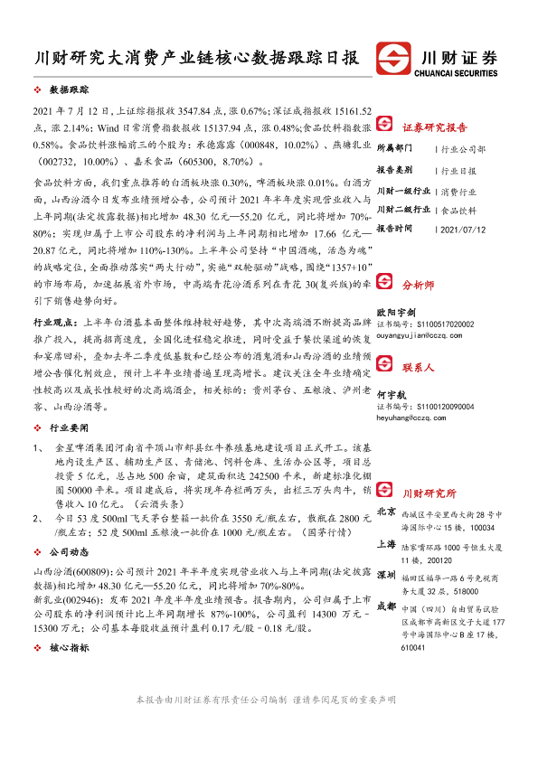 【川财证券】【20210712】大消费产业链核心数据跟踪日报-5页