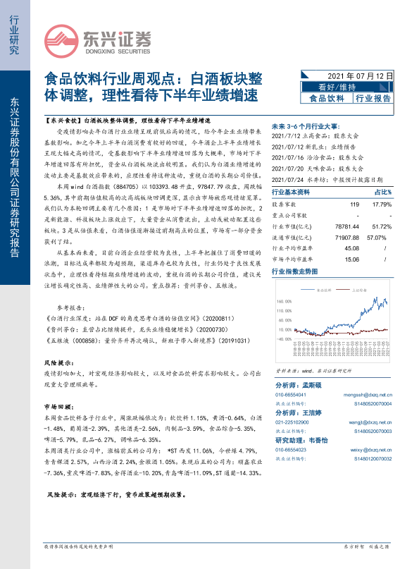 【东兴证券】【20210712】食品饮料行业周观点:白酒板块整体调整,理性看待下半年业绩增速-10页