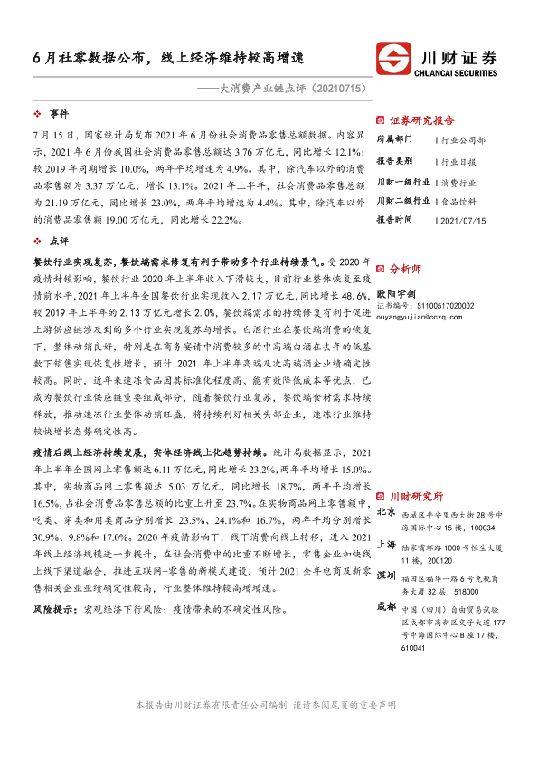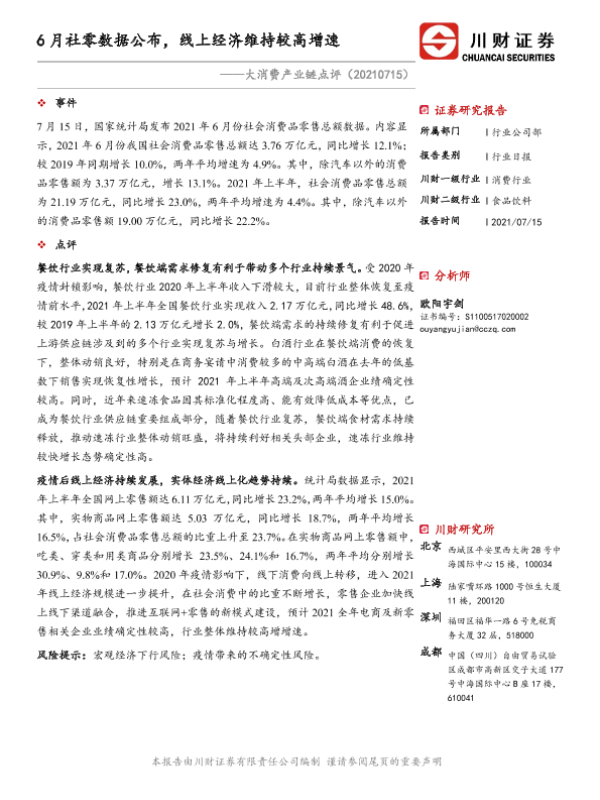 【川财证券】【20210715】大消费产业链点评:6月社零数据公布,线上经济维持较高增速-2页