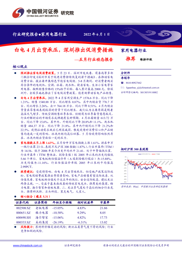 【银河证券】【20220601】家用电器行业五月行业动态报告:白电4月出货承压,深圳推出促消费措施-26页