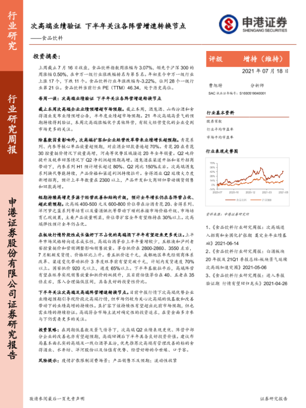 【申港证券】【20210718】食品饮料行业:次高端业绩验证 下半年关注各阵营增速转换节点-7页