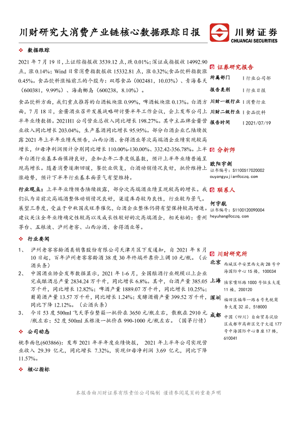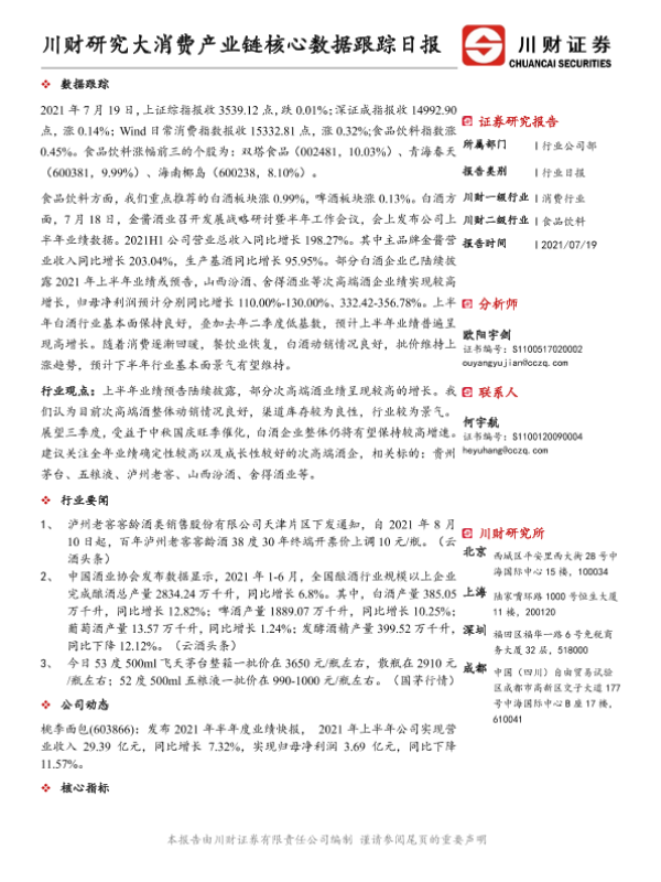 【川财证券】【20210719】大消费产业链核心数据跟踪日报-4页