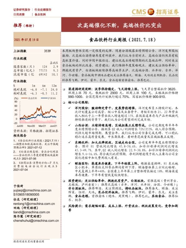 【海通证券】【20210719】食品饮料行业周报:次高端催化不断,高端性价比突出-7页