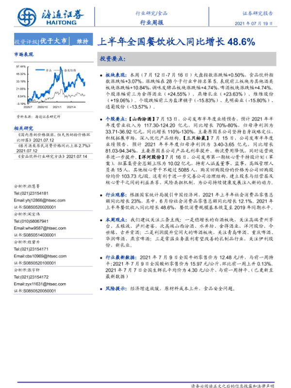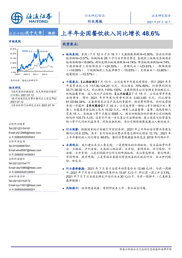 【海通证券】【20210719】20210719-海通证券-食品行业周报:上半年全国餐饮收入同比增长48.6%-7页