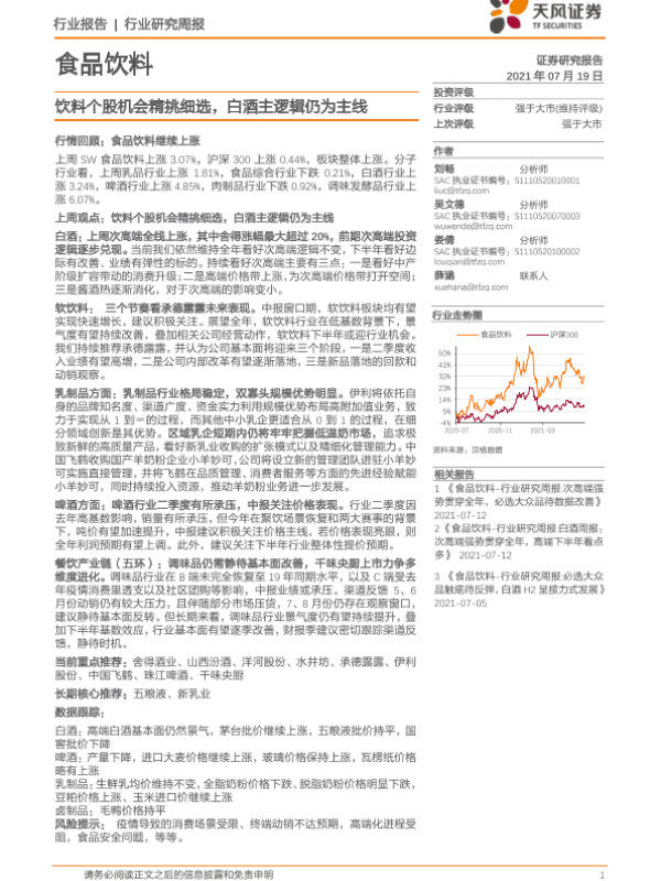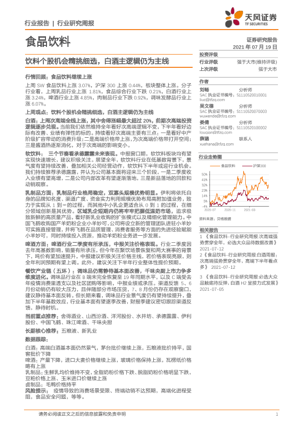 【天风证券】【20210719】食品饮料行业:饮料个股机会精挑细选,白酒主逻辑仍为主线-8页