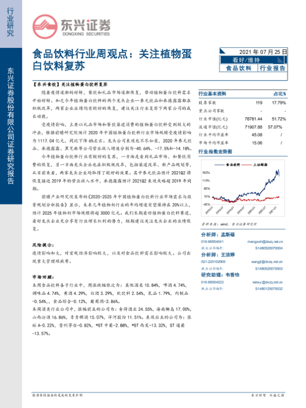 【东兴证券】【20210725】食品饮料行业周观点:关注植物蛋白饮料复苏-10页
