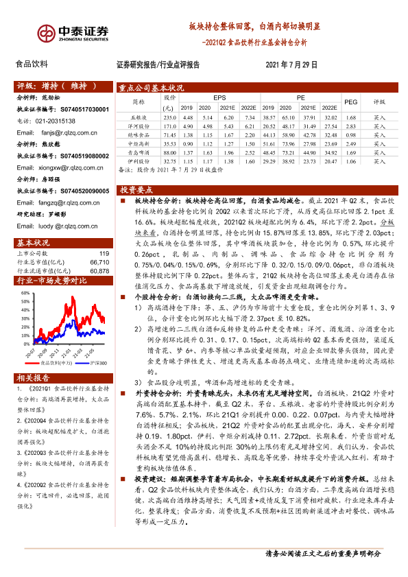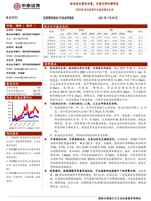【中泰证券】【20210729】2021Q2食品饮料行业基金持仓分析:板块持仓整体回落,白酒内部切换明显-10页