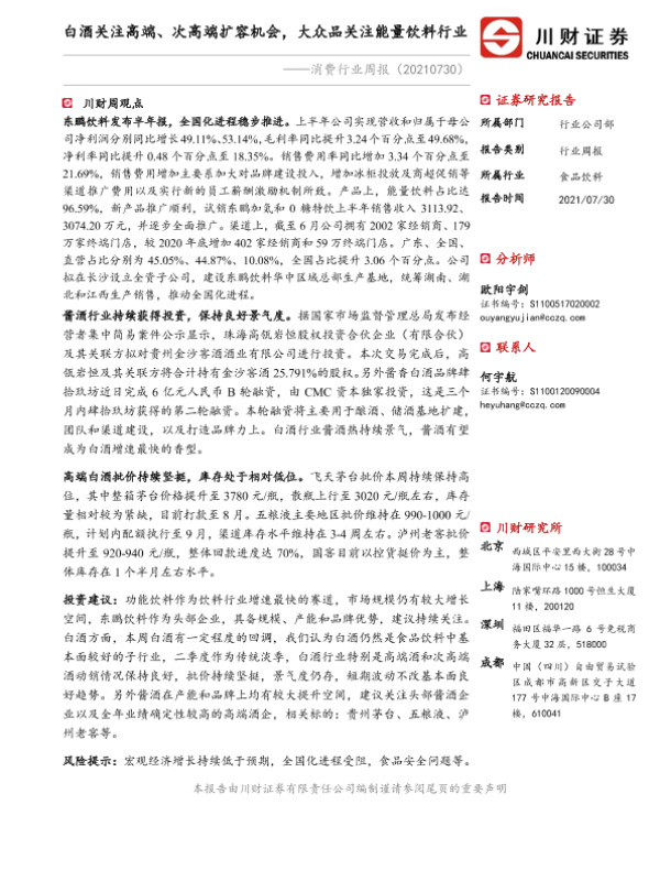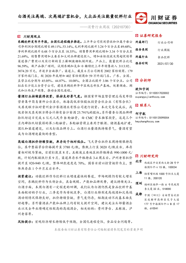 【川财证券】【20210730】消费行业周报:白酒关注高端、次高端扩容机会,大众品关注能量饮料行业-12页