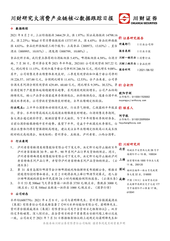 【川财证券】【20210802】川财研究大消费产业链核心数据跟踪日报-4页