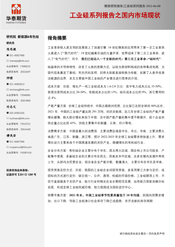 【华泰期货】【20220608】工业硅系列报告之国内市场现状-20页