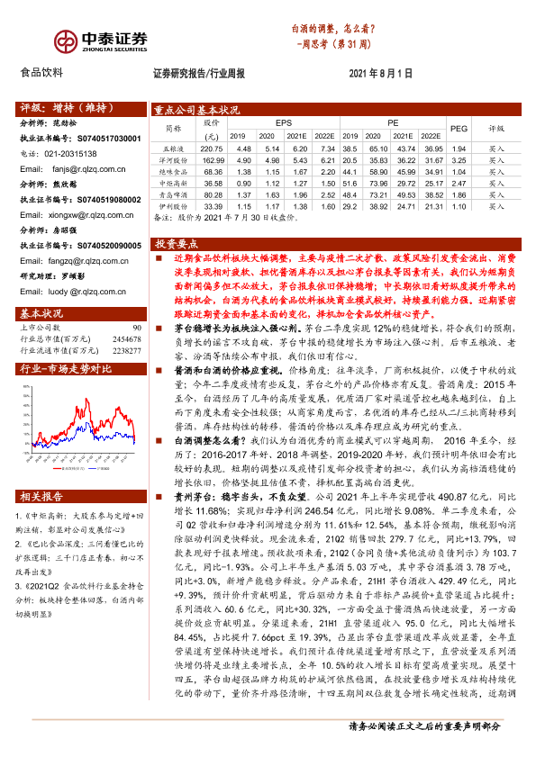 【中泰证券】【20210801】20210801-中泰证券-食品饮料周思考(第31周):白酒的调整,怎么看?-10页