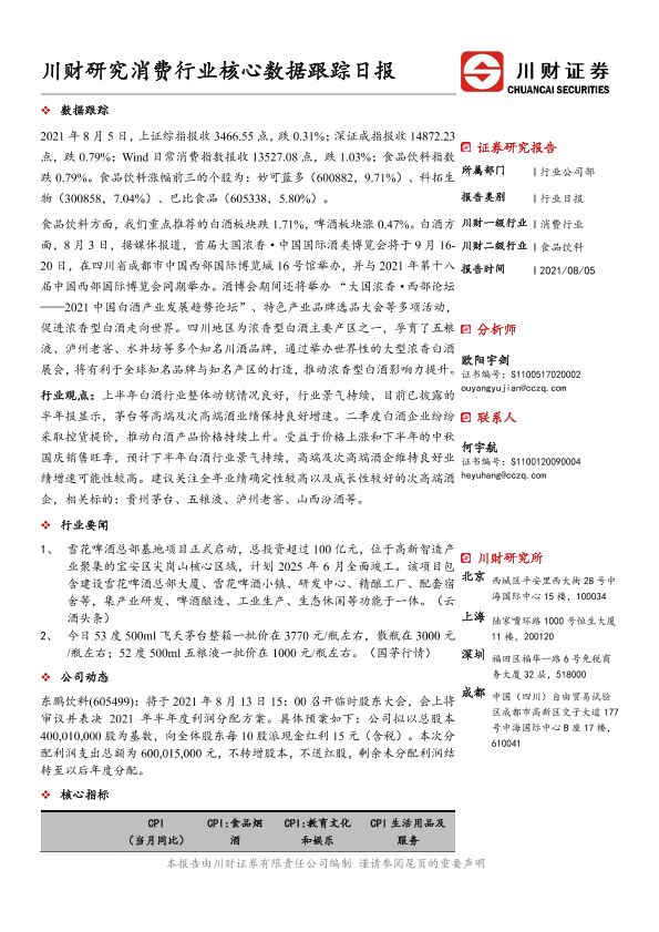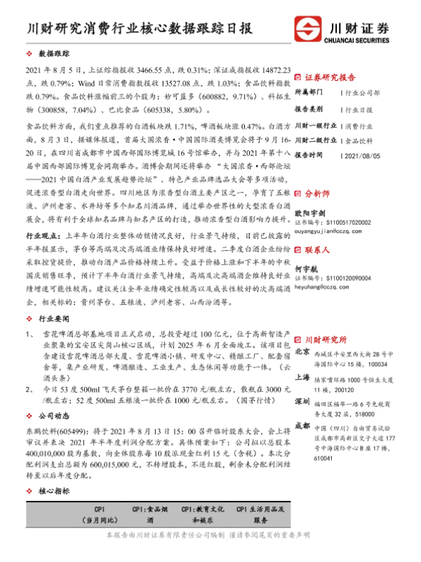 【川财证券】【20210805】消费行业核心数据跟踪日报-4页