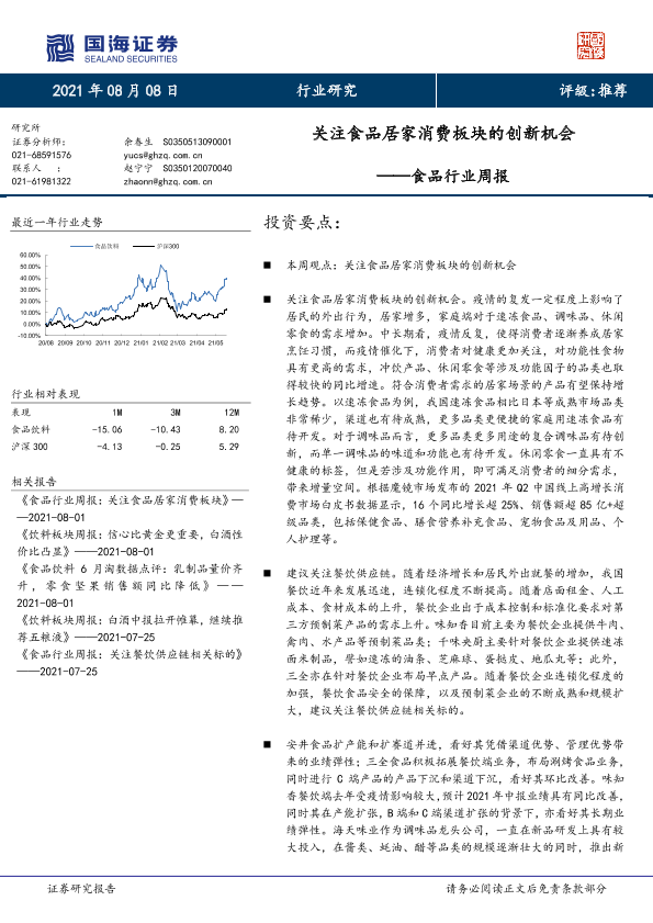 【国海证券】【20210808】食品行业周报:关注食品居家消费板块的创新机会-15页