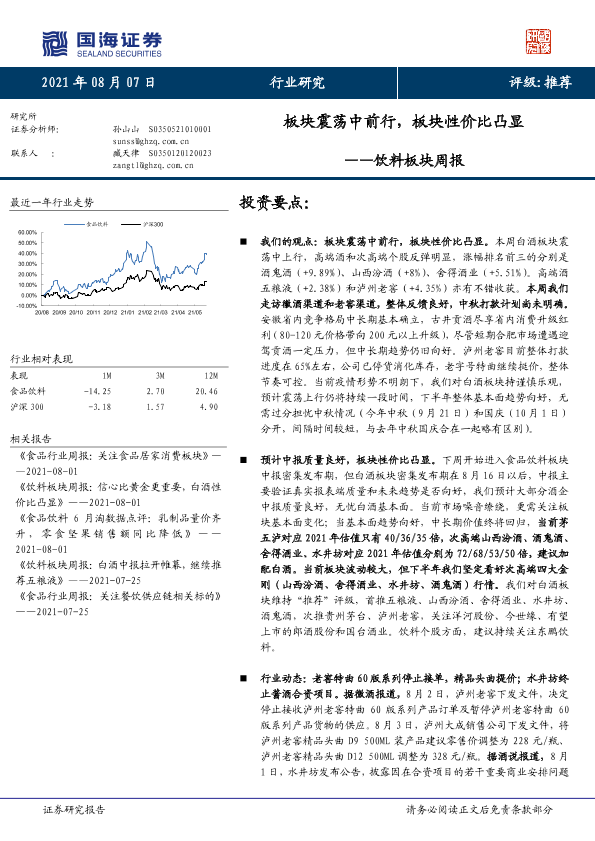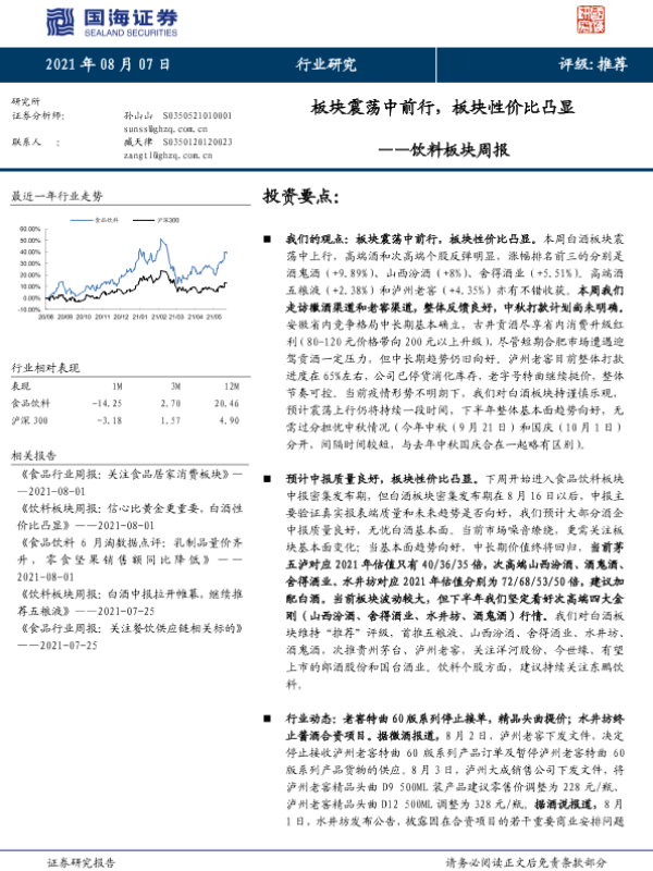 【国海证券】【20210807】饮料板块周报:板块震荡中前行,板块性价比凸显-17页