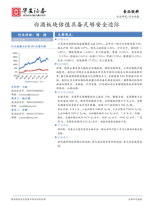 【华安证券】【20210808】20210808-华安证券-食品饮料行业周报:白酒板块估值具备足够安全边际-21页