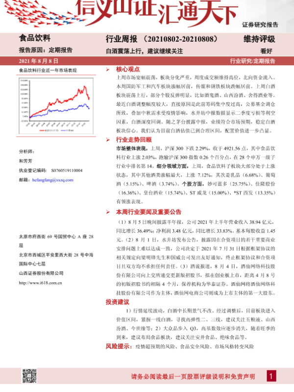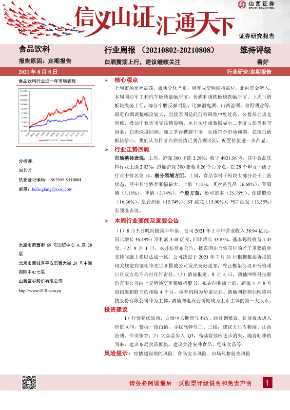 【山西证券】【20210808】20210808-山西证券-食品饮料行业周报:白酒震荡上行,建议继续关注-10页