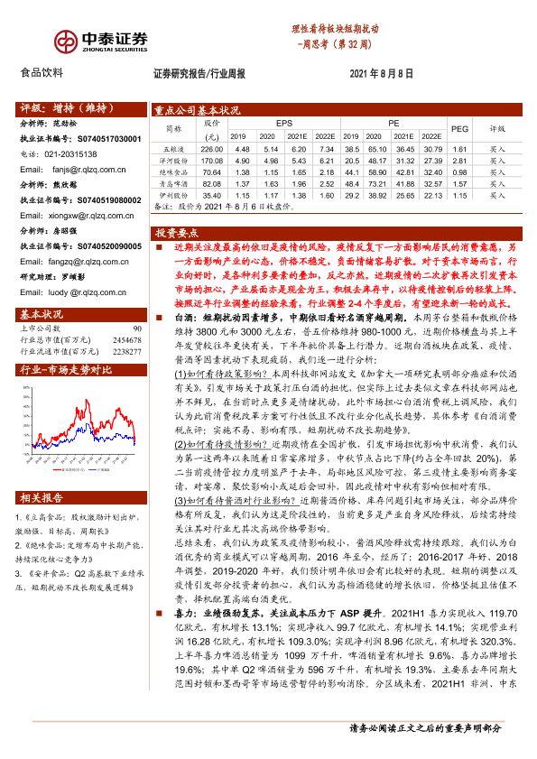 【中泰证券】【20210808】食品饮料周思考(第32周):理性看待板块短期扰动-10页