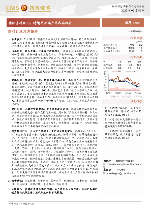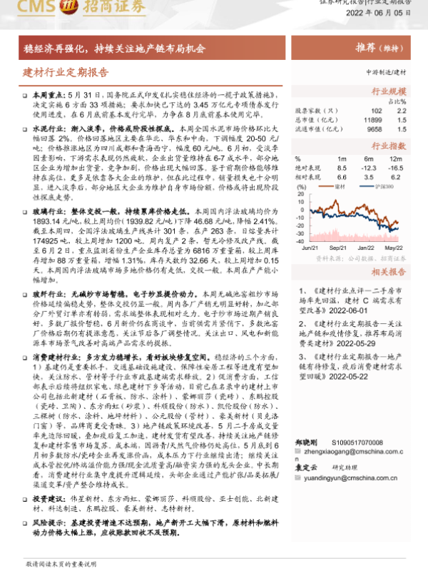 【海通证券】【20220605】建材行业定期报告:稳经济再强化,持续关注地产链布局机会-25页