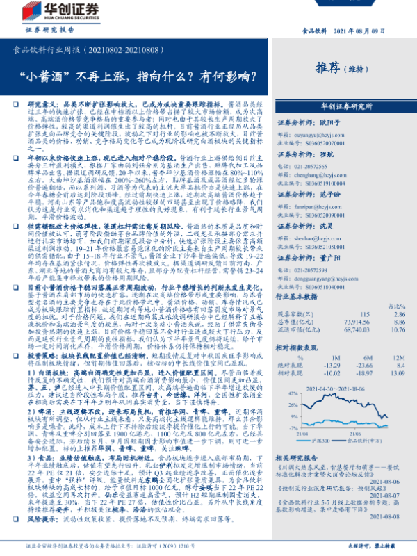 【华创证券】【20210809】食品饮料行业周报:“小酱酒”不再上涨,指向什么?有何影响?-14页