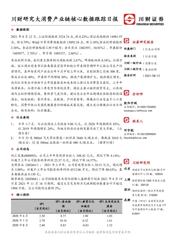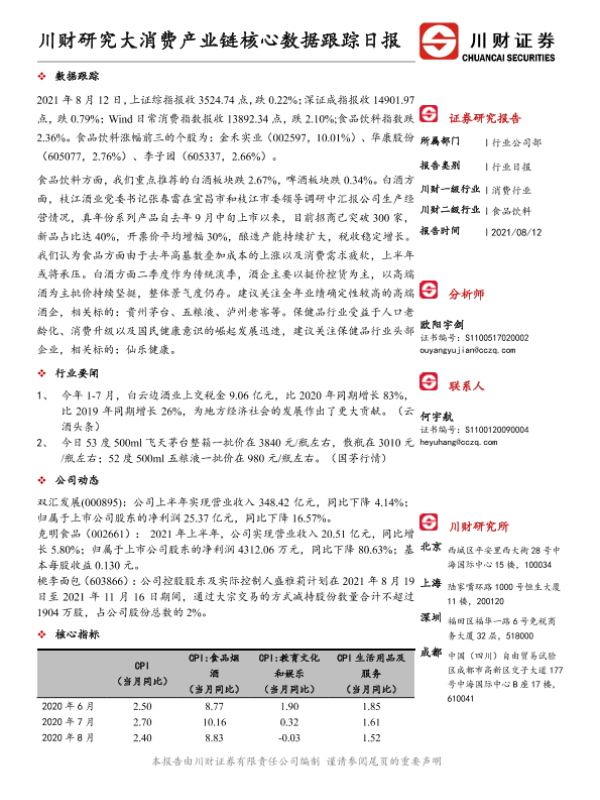 【川财证券】【20210812】川财研究大消费产业链核心数据跟踪日报-4页