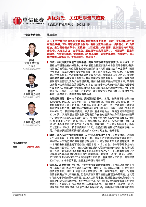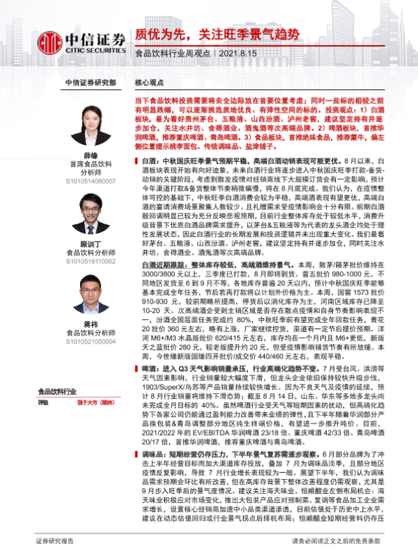 【中信证券】【20210815】20210815-中信证券-食品饮料行业周观点:质优为先,关注旺季景气趋势-3页