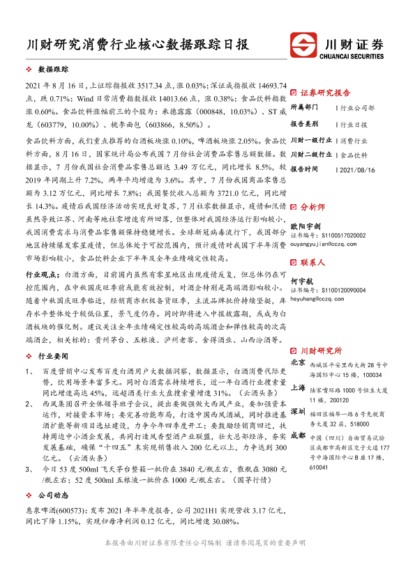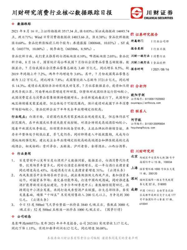 【川财证券】【20210816】消费行业核心数据跟踪日报-5页