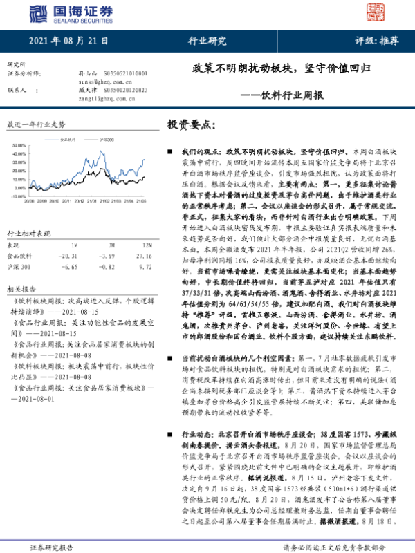 【国海证券】【20210821】饮料行业周报:政策不明朗扰动板块,坚守价值回归-17页