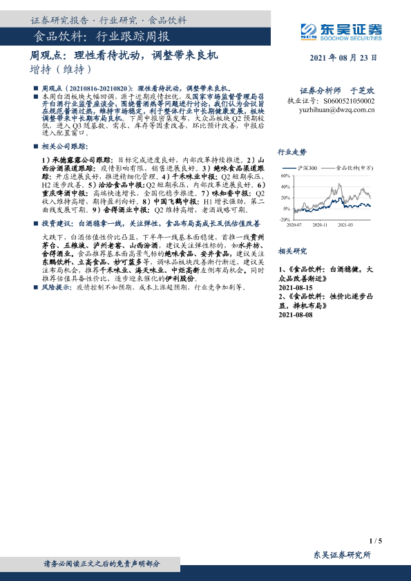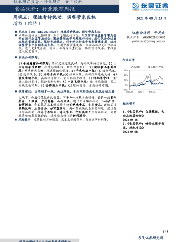 【东吴证券】【20210823】20210823-东吴证券-食品饮料周观点:理性看待扰动,调整带来良机-5页