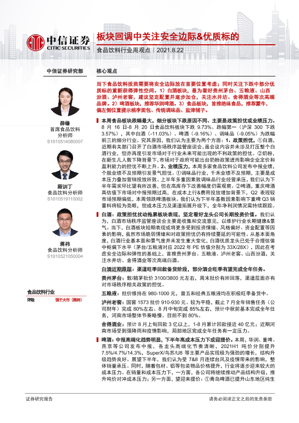 【中信证券】【20210822】食品饮料行业周观点:板块回调中关注安全边际&优质标的-3页