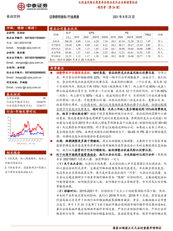【中泰证券】【20210822】从收益风险比角度再论食品龙头企业的投资机会-11页