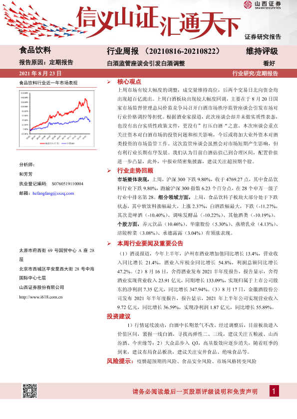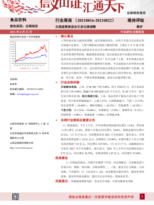 【山西证券】【20210823】20210823-山西证券-食品饮料行业周报:白酒监管座谈会引发白酒调整-10页