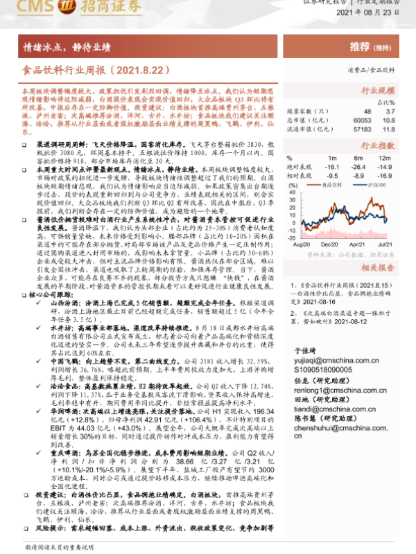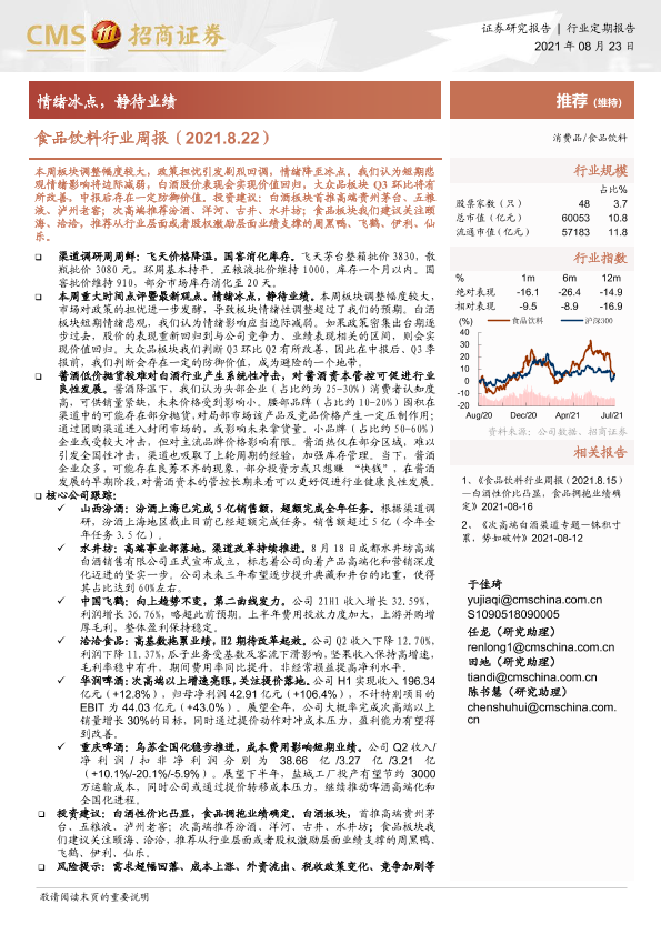 【海通证券】【20210823】食品饮料行业周报:情绪冰点,静待业绩-12页